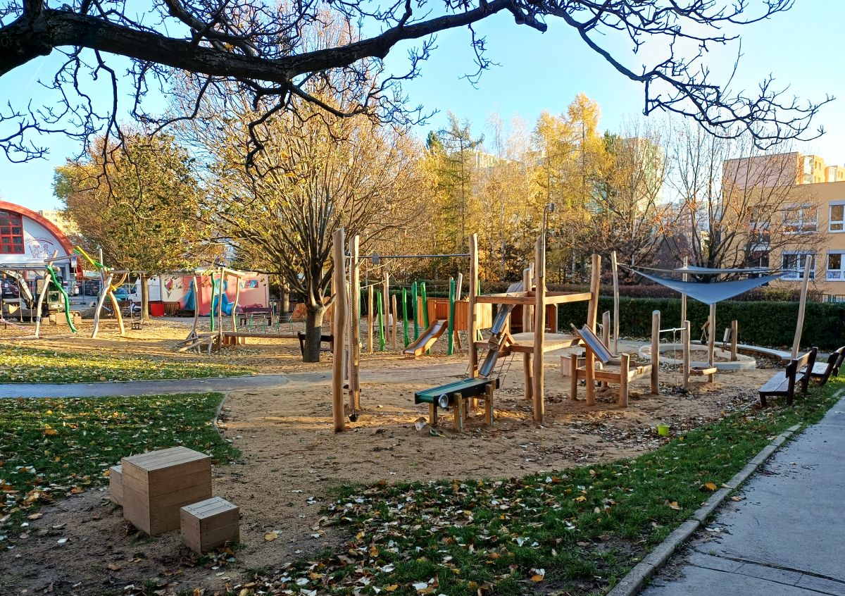 Studie hřiště řeší dle norem všechna bezpečnostní rizika, součástí návrhu jsou také úpravy zeleně a parkový mobiliář.