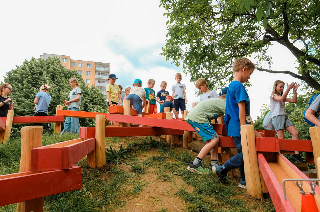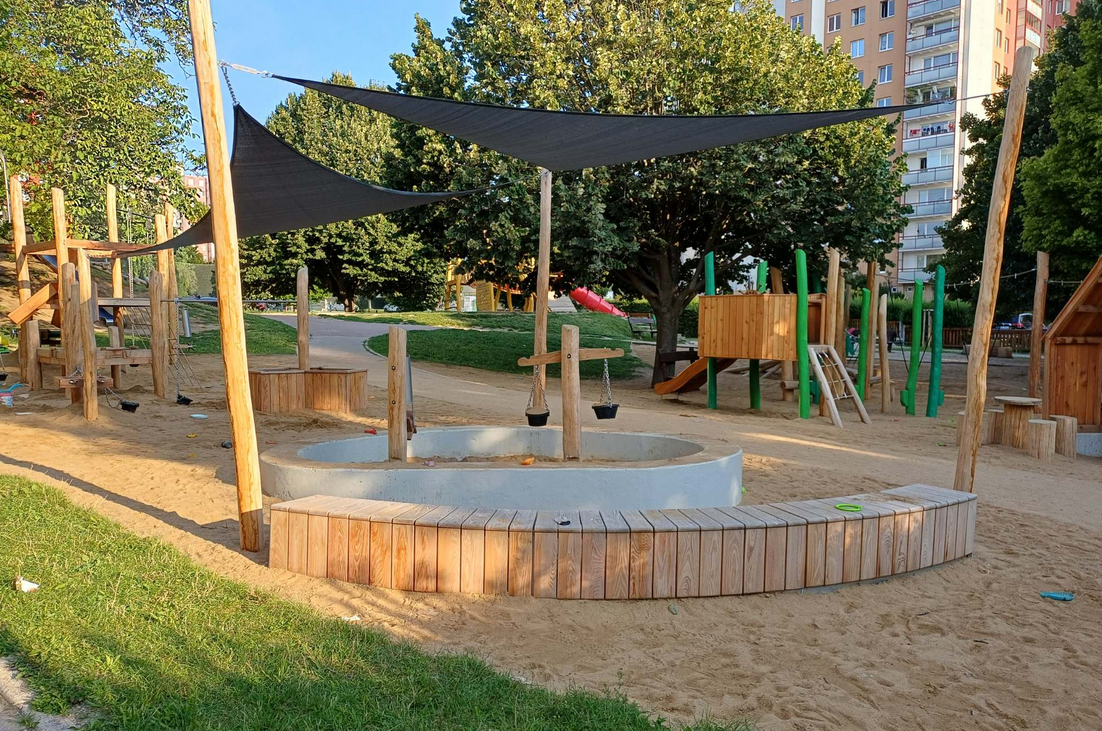 Hřiště Ostrov Dobrodružství představuje architektonický projekt revitalizace staršího městského hřiště. Jeho cílem bylo vytvořit co nejrozmanitější nabídku aktivit pro různé cílové skupiny dětí včetně handicapovaných. Velký důraz byl kladený mj. i na maximální využití stávajících herních prvků, resp. jejich přeměnu a recyklaci.
