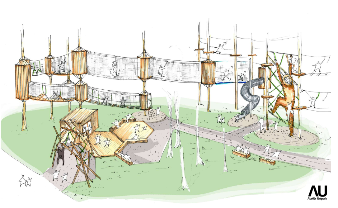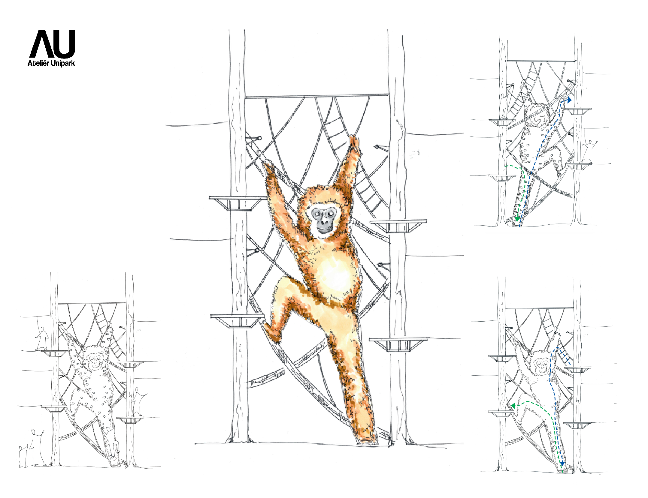 Vizuální magnet a zároveň ikonu parku představuje monumentální lezecká stěna ve tvaru obřího gibona umístěná mezi nástupními a výstupními stromy lanových tras. Mitiv gibona se objevuje také v překážkách lanového parku i 3D bludiště. Dále ve výtvarném zpracování vstupní brány evokující deštný prales a v grafických malbách na objektech v areálu. Výsledkem je zcela originální návrh Jinan forest adventure parku, který spojuje pestrou nabídku adrenalinových aktivit, bezpečnost a silnou vizuální identitu do jednotného velmi atraktivního celku.