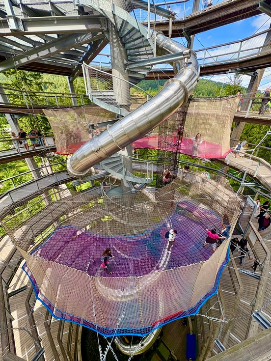 Síťová atrakce uvnitř stezky v korunách stromů v Jánských lázních představuje unikátní projekt dobrodružné atrakce na míru. Dvě sítě nad sebou spojené vertikálním síťovým tunelem jsou zavěšené ve středu spirálového tubusu vyhlídkové věže. Pohyb ve volném prostoru, skákání a akrobatické prvky ve výškách 21 a 25,5 metru nad terénem přinášejí návštěvníkům skutečně intenzivní adrenalinový zážitek. Tato dobrodružná síťová atrakce svou jedinečností zvyšuje atraktivitu stezky v korunách stromů, láká nové návštěvníky, teenagery i milovníky adrenalinu.